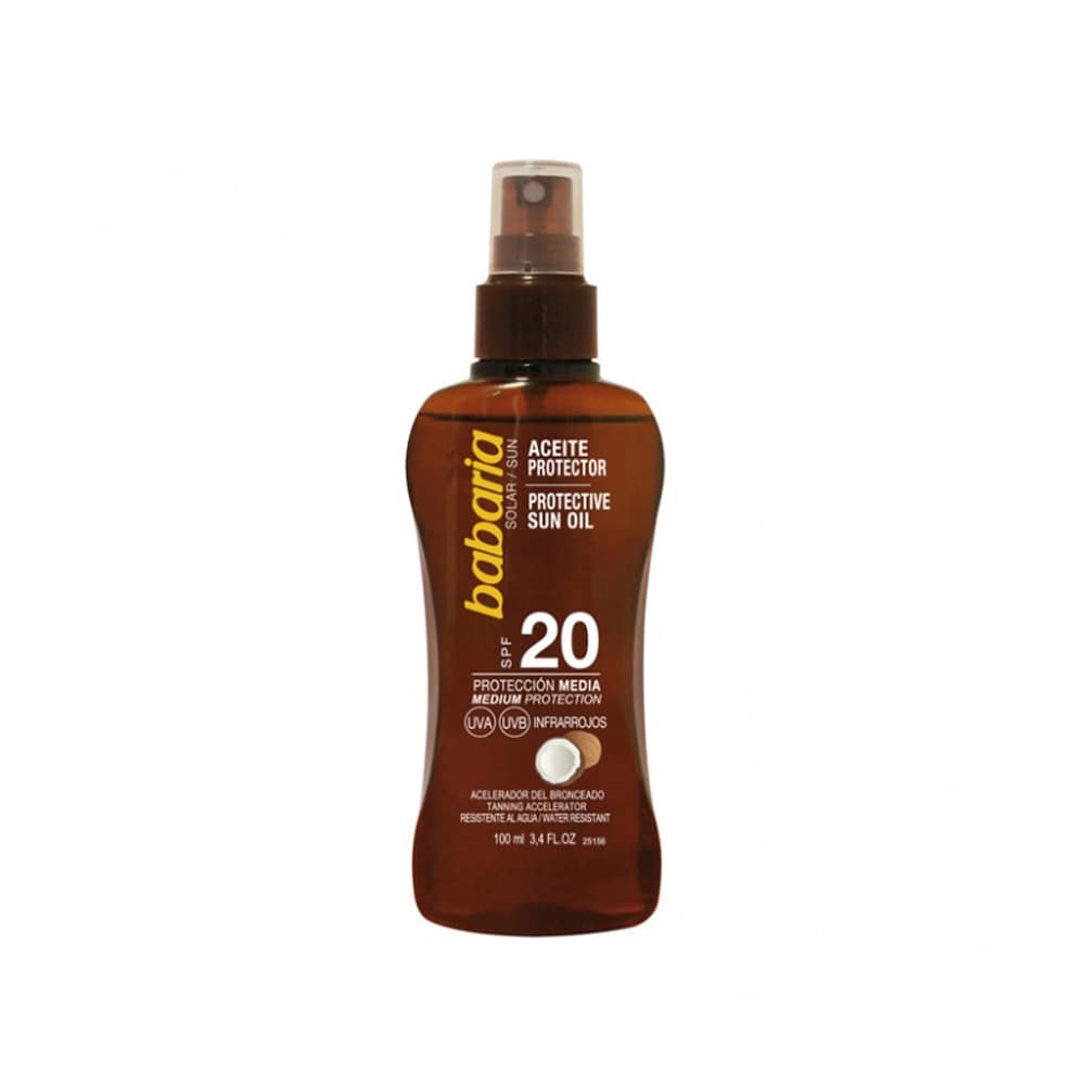 Aceite protector SPF 20. Protección media. Resistente al agua.