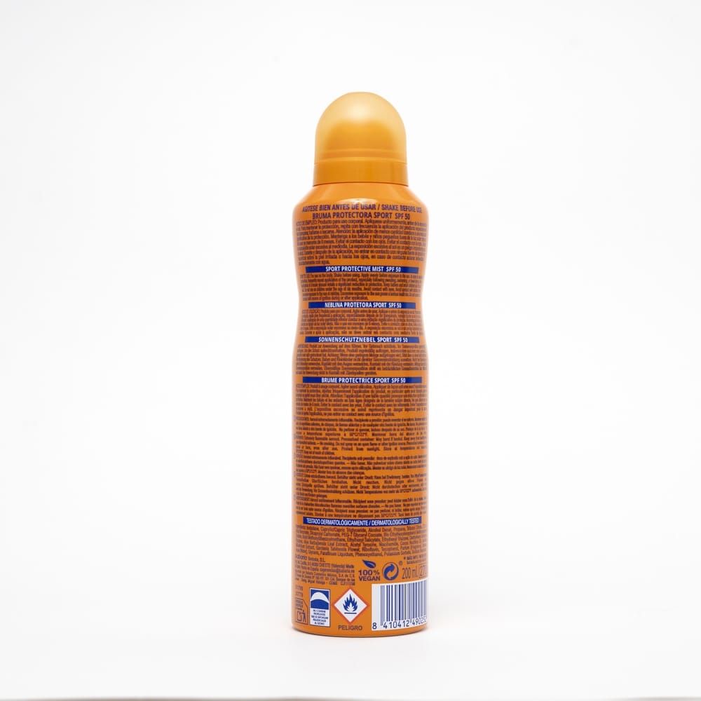 Bruma protectora invisible SPORT. Protección alta SPF 30. Resistente al agua y sudor.