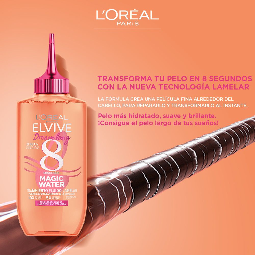 L’Oréal Paris Elvive Dream Long Magic Water Tratamiento Capilar de 8 segundos para cabellos largos y dañados con tecnología lamelar – 200 ml