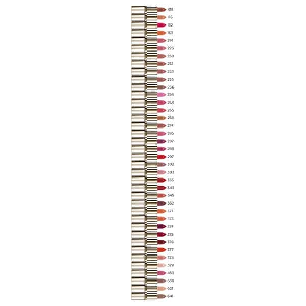 G901465 – INGREDIENTS: LANOLIN OI • OLEYL ERUC • HYDROGENAT • ACETYLATED • SESAMUM IN • PETROLATUM • CERA MICRO • CERA ALBA • PARAFFIN • SYNTHETIC • ALUMINA • DISTEARDIM • VINYL DIME • SYNTHETIC • CALCIUM SO • PENTAERYTH • PENTAERYTH • POLYHYDROX • CALCIUM AL • ARGANIA SP • TOCOPHERYL • CAMELLIA O • ROSA CANIN • CAPRYLIC/C • SILICA • GERANIOL • ALUMINUM H • BENZYL ALC • HEXYL CINN • TIN OXIDE • HYDROXYCIT • BHT • TOCOPHEROL • HYDROGENAT • MAGNESIUM • METHYL-2-O • NELUMBIUM • PROPYLENE • PROPYL GAL • CITRIC ACI • PARFUM / F ● [+/- MAY CONTAIN: CI 77891 / • MICA • CI 77491, • CI 15850 / • CI 45410 / • CI 15985 / • CI 45380 / • CI 19140 / • CI 75470 / • CI 42090 / • CI 15850 / • CI 15850 /]. (F.I.L. B174944/4).