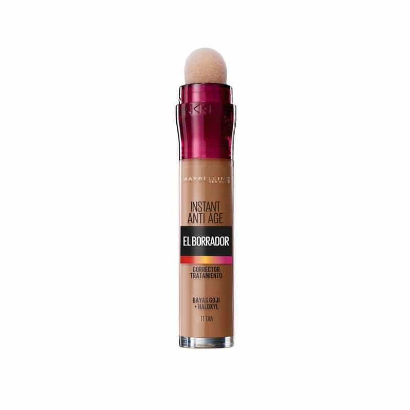 El Corrector Borrador en tono 11 Tan, borra ojeras, bolsas e imperfecciones al instante con una cobertura completa y uniforme. Su fórmula hidratante y aplicador rellenan sin cuarterarse. Ideal para pieles oscuras.