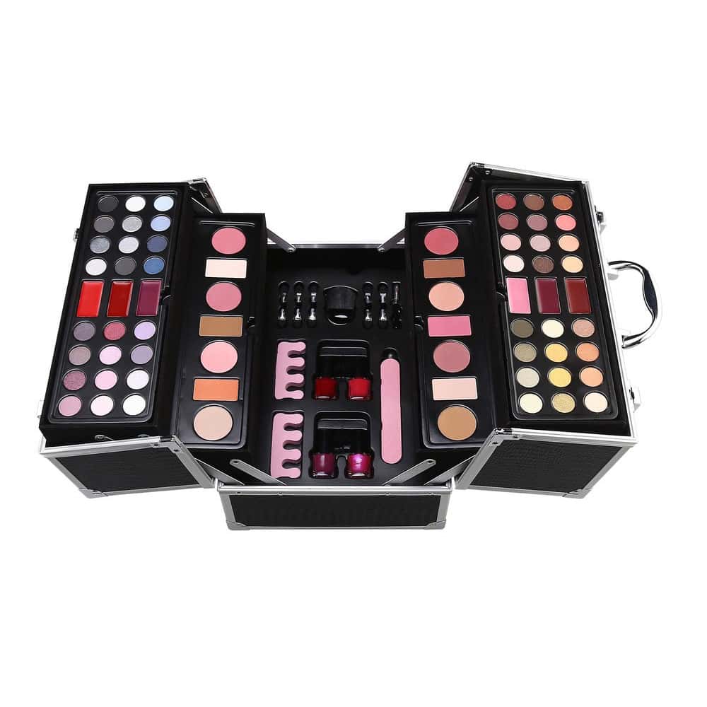 Kit de Maquillaje que contiene: sombra de ojos, coloretes, polvo compacto, contouring, brillo de labios, esmalte de uñas.