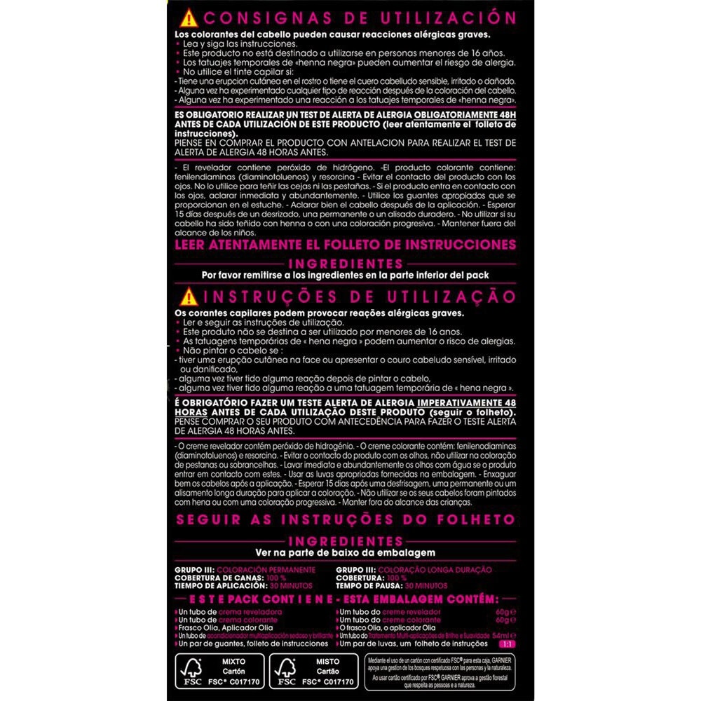 Garnier Olia es una coloración permanente con aceites florales de origen natural, sin amoniaco para un olor agradable y respeto del cuero cabelludo. Coloración tras coloración, mejora visiblemente la calidad de tu pelo para un color intenso más brillante y más bonito, y un pelo sedoso y cuidado. 100% cobertura de canas.