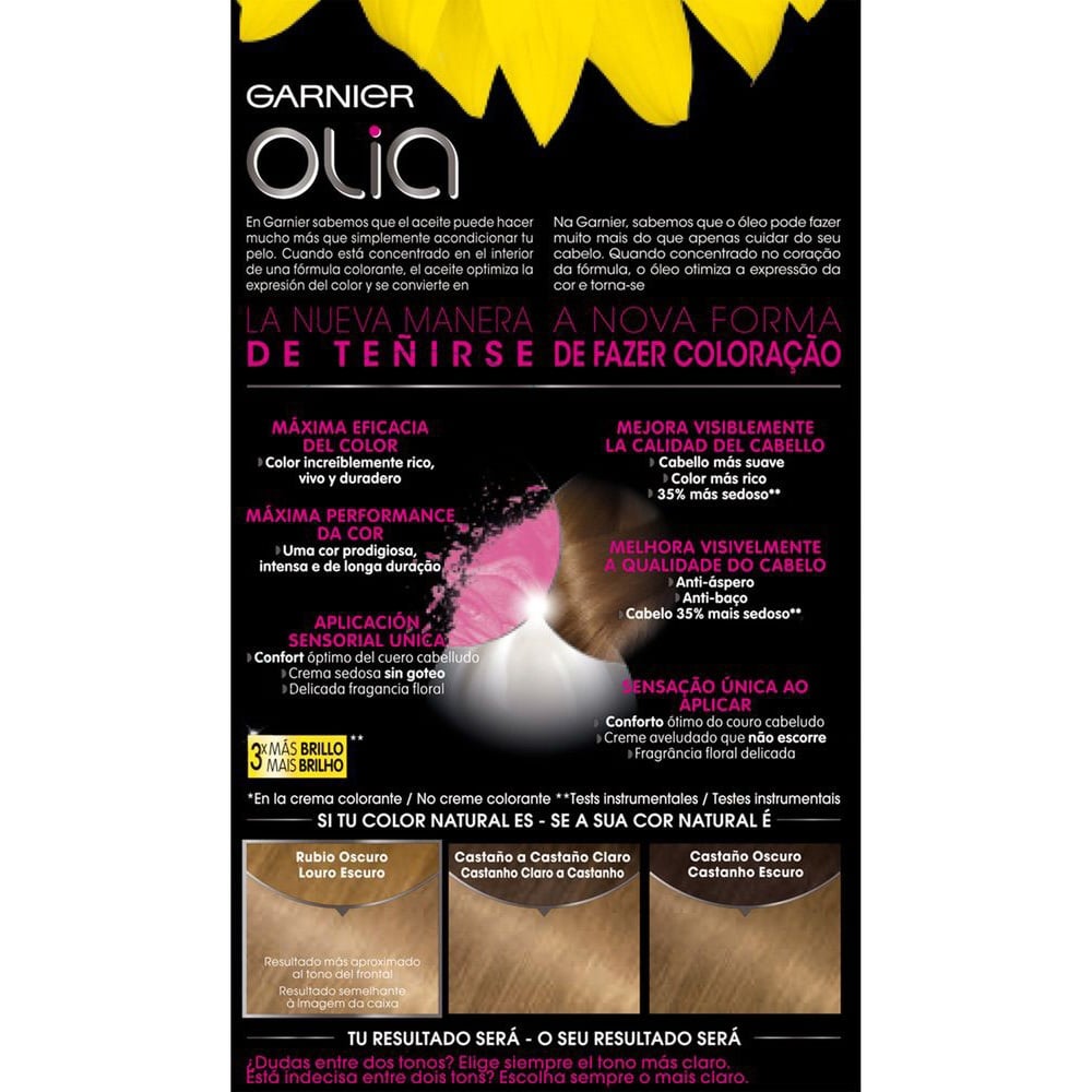 Garnier Olia es una coloración permanente con aceites florales de origen natural, sin amoniaco para un olor agradable y respeto del cuero cabelludo. Coloración tras coloración, mejora visiblemente la calidad de tu pelo para un color intenso más brillante y más bonito, y un pelo sedoso y cuidado. 100% cobertura de canas.