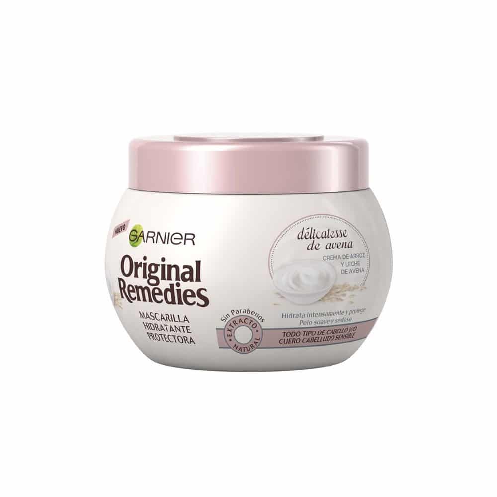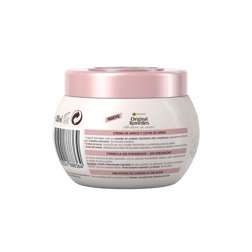 Original Remedies Délicatesse de Avena Mascarilla protectora calmante e hidratante, enriquecida con crema de arroz y leche de avena, es ideal para cuero cabelludo sensible y para todo tipo de cabello. Sin parabenos.
