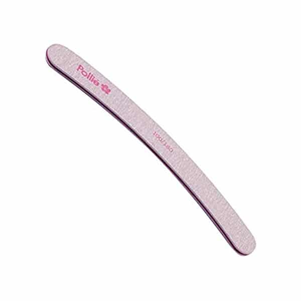 Lima acolchada cebra curvada con un gramaje de 100/180 y medidas de 2 cm x 17,5 cm x 0,3 cm.